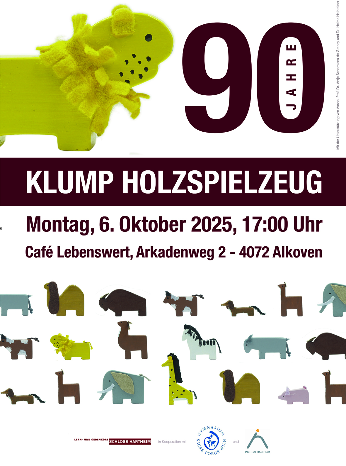 Im Lern- und Gedenkort Schloss Hartheim wurden 90 Jahre nach dem Entstehen des Holzspielzeugs durch Mitarbeiter:innen des Gedenkorts sowie durch die Beschäftigten des integrativ geführten Cafés „Café Lebenswert“ des Instituts Hartheim gemeinsam mit Schüler:innen des Gymnasiums Sacre Coeur Wien Reproduktionen von KLUMP hergestellt.
