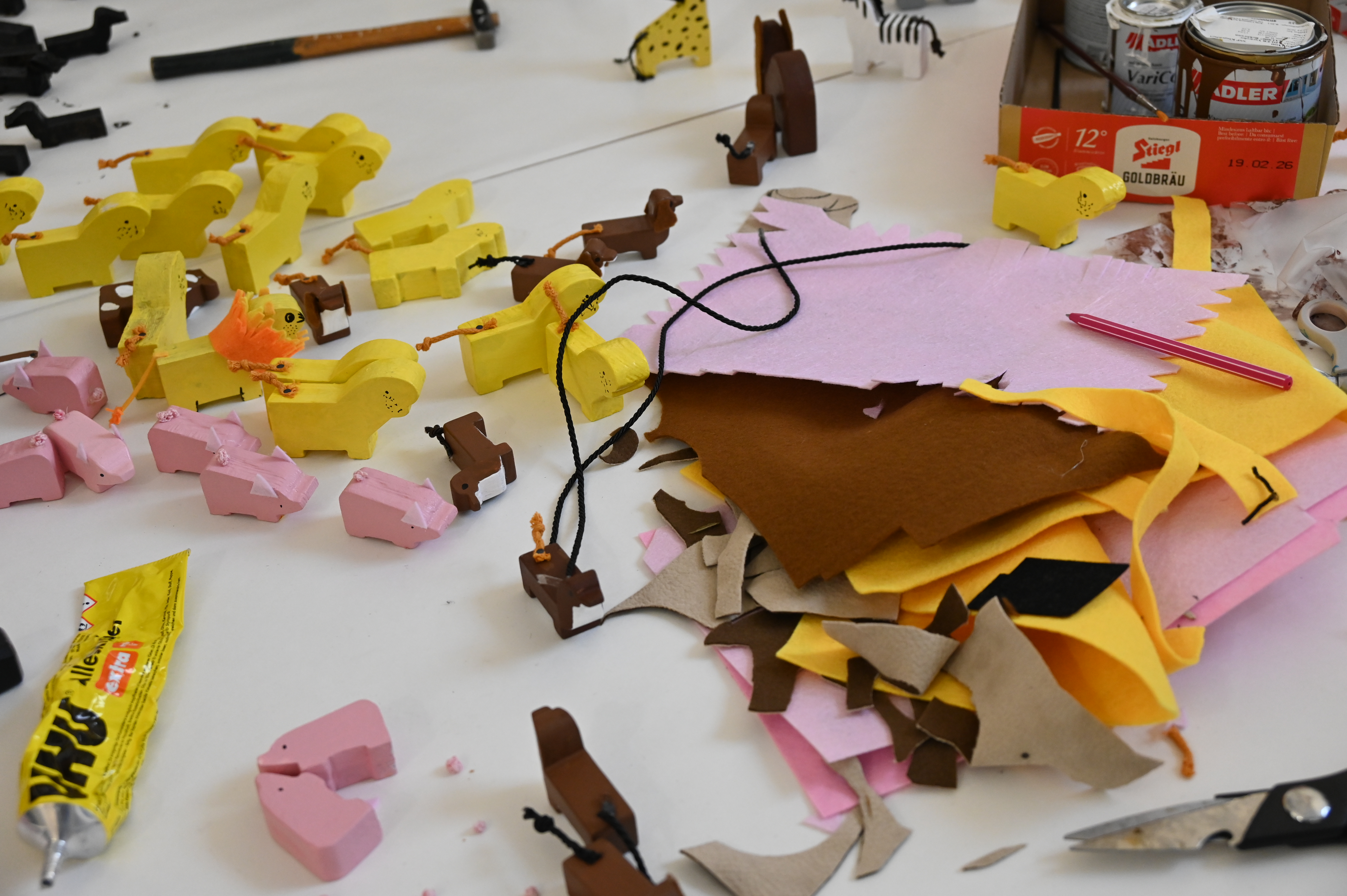 Mitarbeiter:innen des Lern- und Gedenkorts Schloss Hartheim haben gemeinsam mit Beschäftigten unseres Cafés Lebenswert im Rahmen eines Kreativworkshops die legendären KLUMP-HOLZTIERE neu zum Leben erweckt. Mit viel Begeisterung wurden die Holzfiguren bemalt, mit Filzmähnen und -ohren beklebt und mit zahlreichen kreativen Details versehen.
