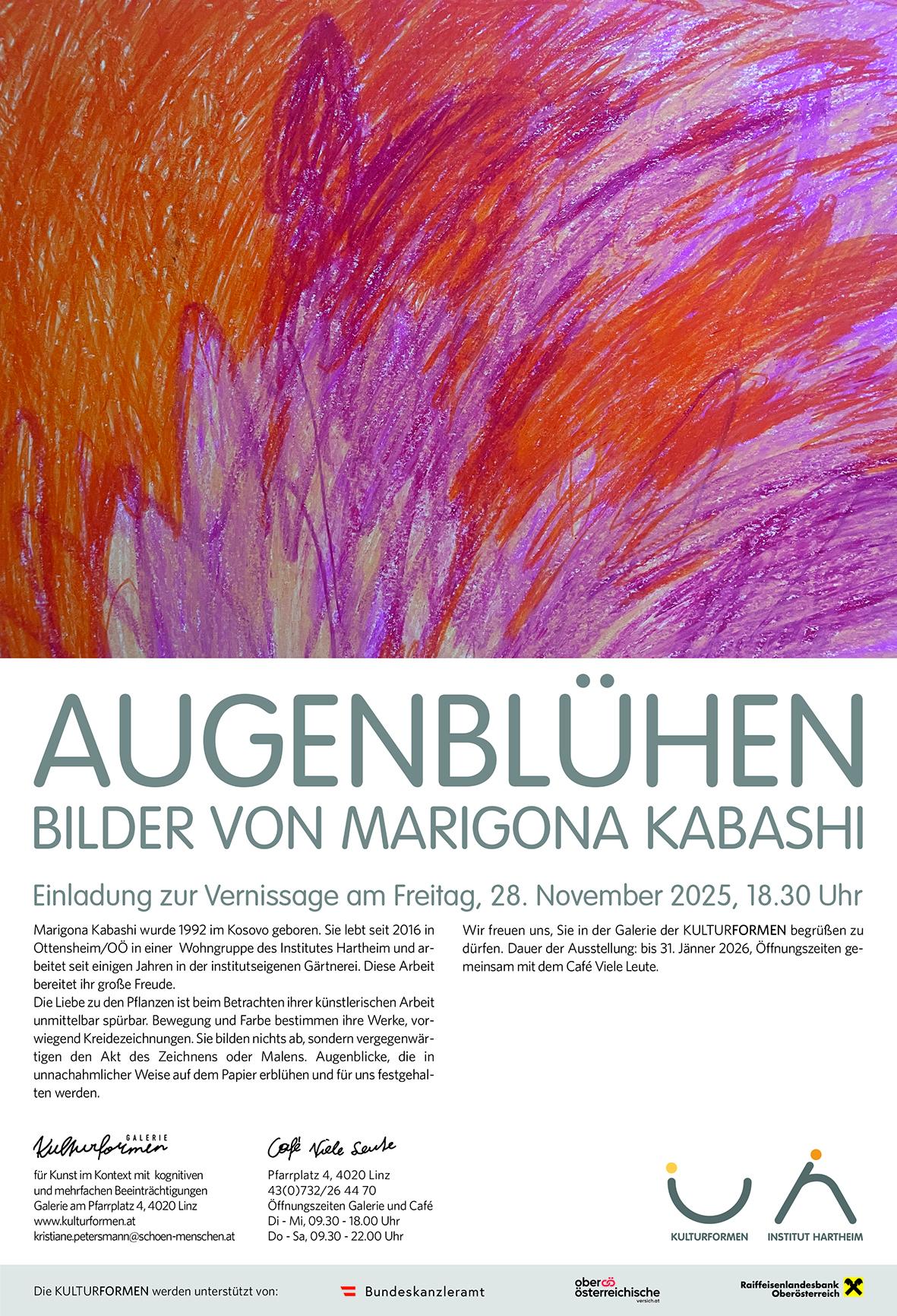 Marigona Kabashi wurde 1992 im heutigen Kosovo geboren. Sie lebt seit 2016 in Ottensheim/OÖ in einer Wohngruppe des Institutes Hartheim und arbeitet seit einigen Jahren in der institutseigenen Gärtnerei. Diese Arbeit bereitet ihr große Freude.